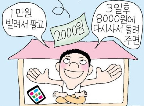 빌린사람은 매도금(50,000) - 매수금(40,000원) = 10,000원의 수익을 얻게 됩니다.