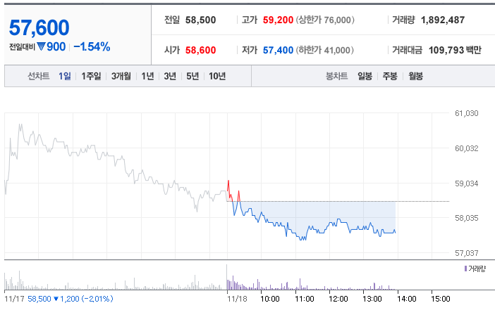 주가(11/17) : 59,700원