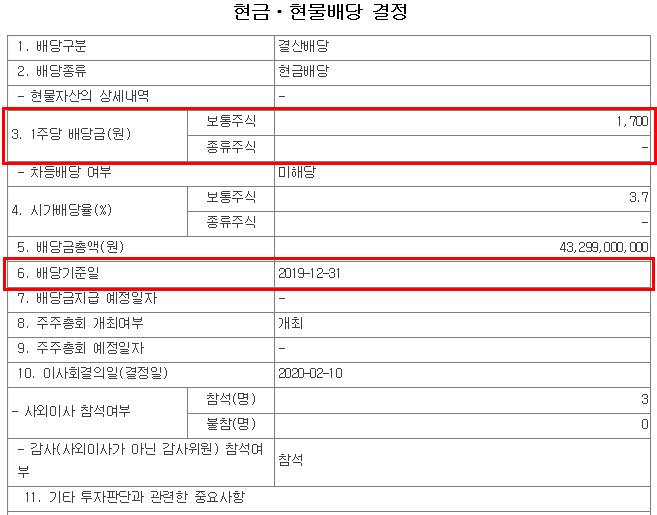 | 배당기준일 | 배당금 지급일 | 배당금 | |