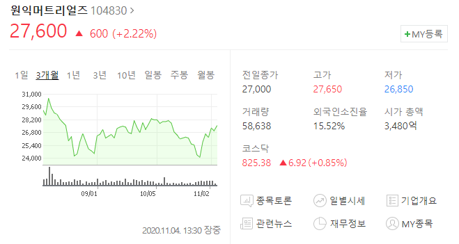 20년 6월 기준으로 작년 대비 매출액은 37.88% 증가 했습니다. 영업이익은 13.62% 감소 했으며, 당기순이익은 57.12% 감소 했습니다. 매출 증가했던 부문은 클린룸제어시스템과 BLDC 모터 부문 입니다. 두 사업부문을 합쳐 매출이 약 69억원 달성하였습니다. 하지만 영업이익의 감소의 원인은 매출원가의 증가로 분석 됩니다. 이번 삼성전자의 중국 시안과 평택 2공장 그리고 SK하이닉스 M16 투자 확대로 인해 필수 설치 요소인 클린룸 수요가 증가 할 것으로 예상되어 매출 성장과 동시에 주사 상승이 기대되는 종목 입니다.