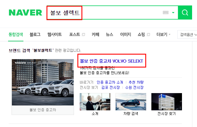 먼저 검색 방법으로 들어가는 방법 입니다. 검색포털에서 볼보 셀렉트를 검색 해주시기 바랍니다.