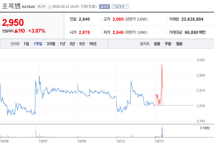 빅히트 관련주 - 초록뱀(047820)