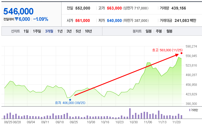 주가(11/25) : 552,000원