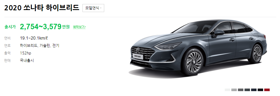 지금까지 현대자동차 인기 차종인 쏘나타 하이브리드 차량에 대해서 가격 및 가격표 연비 색상 등 다양한 정보를 알아보았습니다. 위의 정보 활용하셔서 좋은 차량 잘 구매하시기 바랍니다.