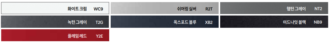 모든 트림과 색상에 적용이 되는 것이 아니기 때문에 적용이 불가한 조합을 하단의 이미지에서 안내드리겠습니다. 해당 부분을 참고 하시면 선택에 도움이 되실 겁니다.