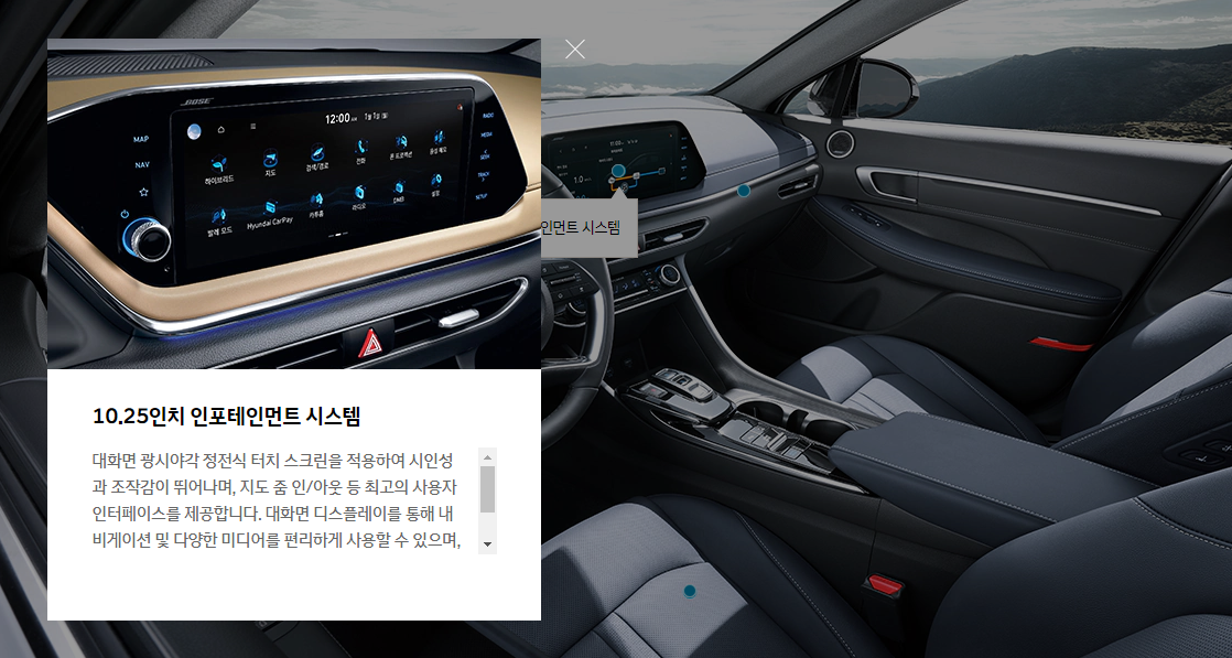 쏘나타 하이브리드 내부 인테리어 및 색상