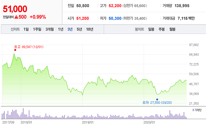 평균 목표가로는 59,750원 이며 키움증권 긍정적 평가를 받았습니다. 키움증권에서는 하반기부터 중소형 및 대형 OLED 소재 공급량 증가로 인한 실적이 상승하여 강세를 띌 전망이며, 내년(2021년 또한 사상 최대의 실적이 기대되는 종목이라고 말하며, 적극적인 매수를 추천한다고 합니다.