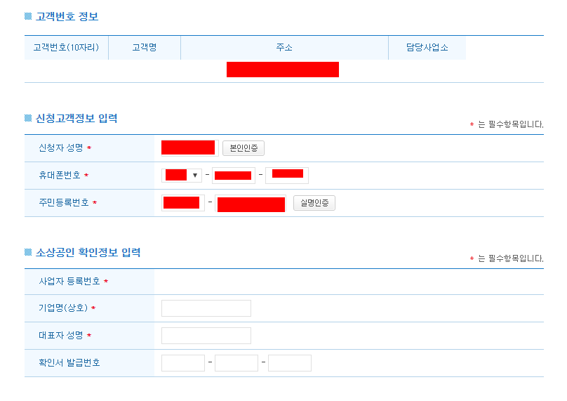 개인정보 입력사항하시고 사업자관련 등록번호 및 대표자 성명을 자세히 입력해주세요.