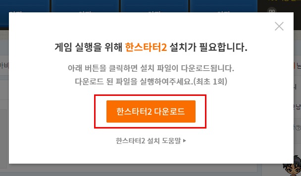 저는 새로운 신맞고로 진행을 해보았습니다. 새로운 신맞고를 클릭하시면 한스타터2를 설치하게 됩니다. 아래의 이미지를 봐주세요.