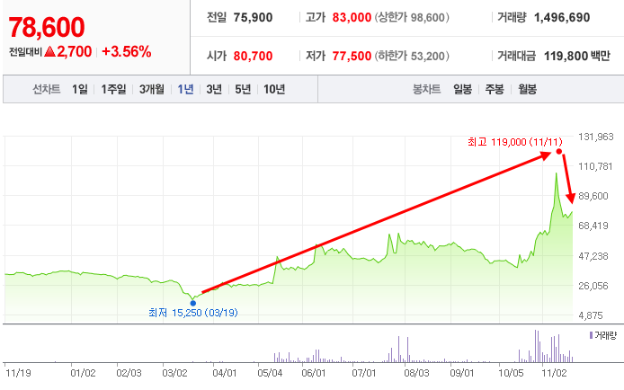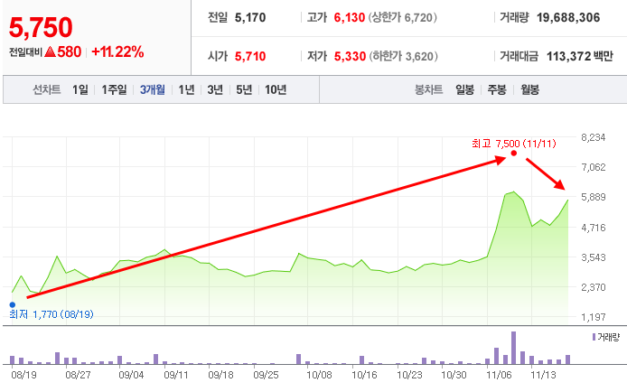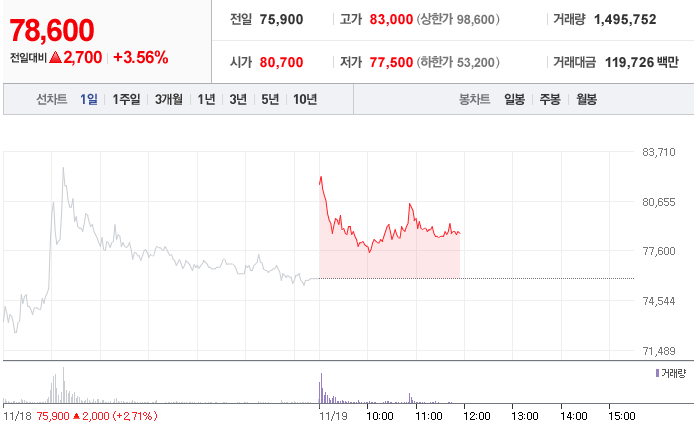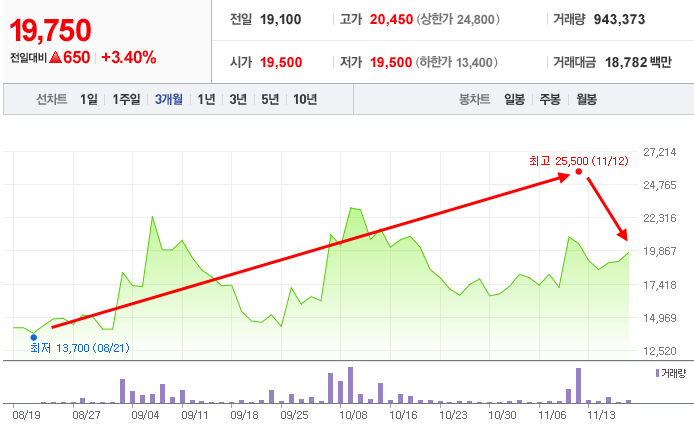 여기서 가장 중요한 포인트는 KPX생명과학이 화이자에 항생체중간체 'EDP-CI'를 독점 공급하는 것으로 알려졌기 때문이입니다. 하단에서 주가 흐름도 확인하시기 바랍니다.