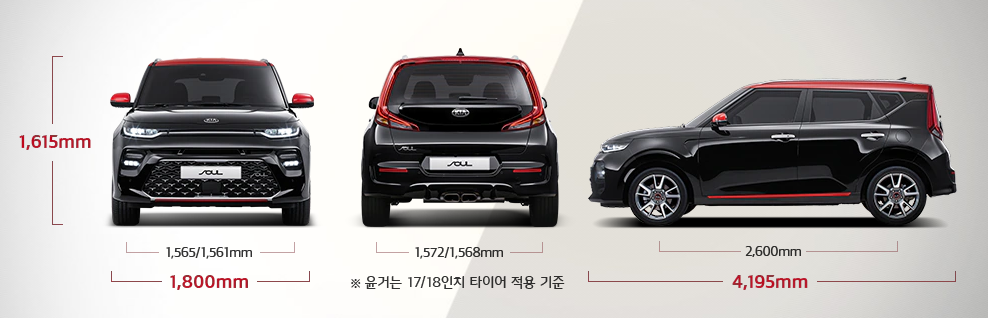 다음은 쏘울 제원에 대해서 알아보겠습니다. 하단의 이미지를 봐주시기 바랍니다.