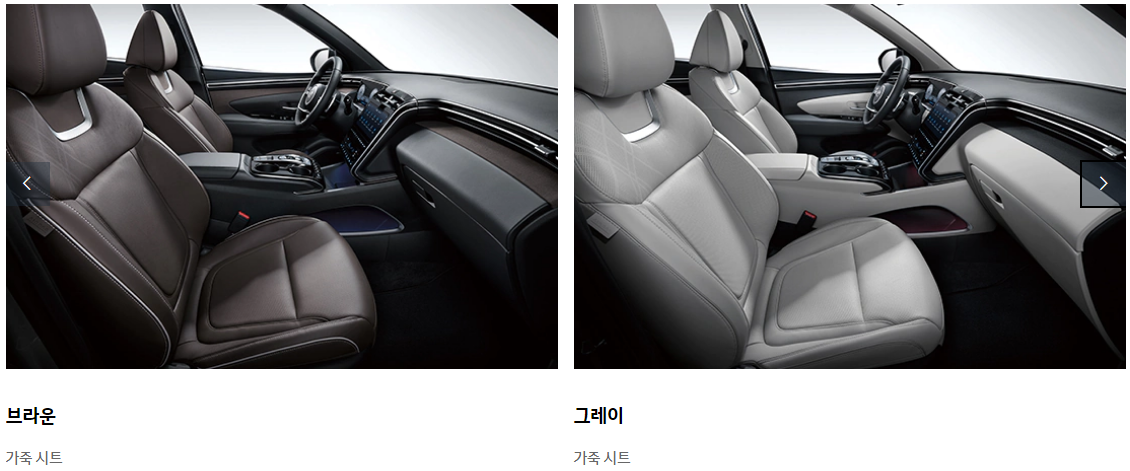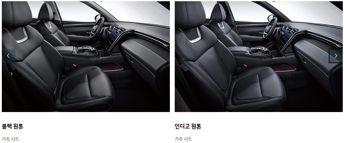 인조가죽과 일반시트로 분류되며 블랙원톤, 인디고원톤, 브라운, 그레이로 선택 가능 합니다. 외부 색상과 잘 맞춰서 선택해야 촌스럽지 않기 때문에 잘 참고 하시기 바랍니다.