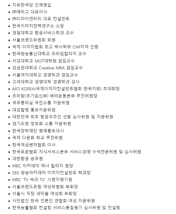 직업 : 이미지컨설턴트, 기업가, 대학교수