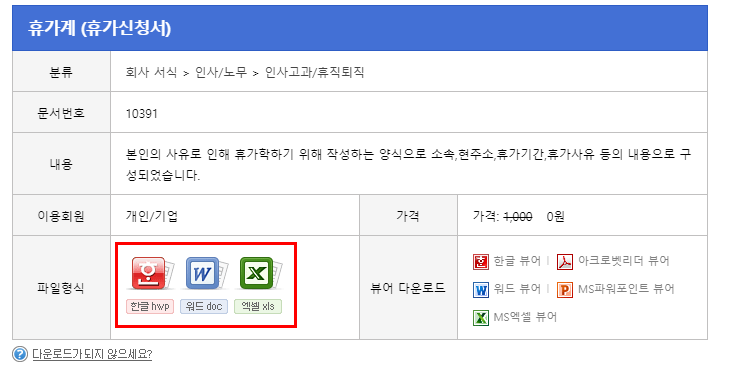 이런과정도 복잡하신 분들은 하단에 원하시는 파일을 골라 선택 하시면 바로 휴가신청서 다운로드 가능합니다.