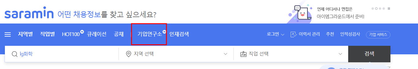 메인페이지 상단 카테고리를에 기업연구소에 접속 해주세요.