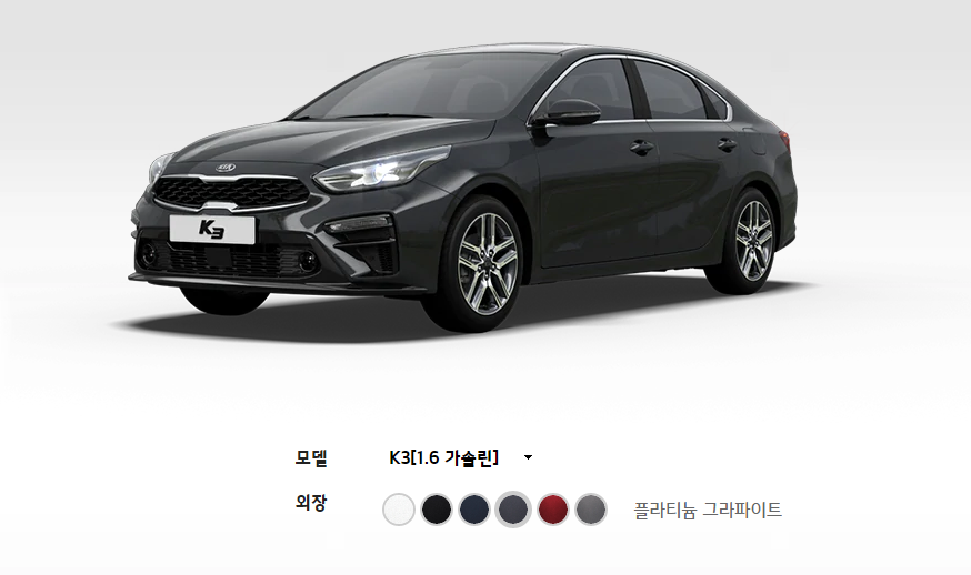 다음으로 알아 볼 정보는 색상 입니다. 차량을 선택하는 중요한 요인 중 하나가 바로 외부 색상 및 인테리어 입니다. 2021 K3은 총 6가지로 색상 선택이 가능 합니다. 스노우 화이트 펄, 스틸 그레이, 오로라 블랙 펄, 그래비티 블루, 플라티늄 그라파이트, 런웨이 레드 입니다.