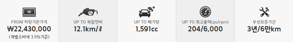 각 상세 트림별 옵션표하는 다음 목록에서 자세히 알아보도록 하겠습니다. 가격은 성능으로 따지면 아반떼 보다 가성비가 좋은 차량이라고 생각 합니다.