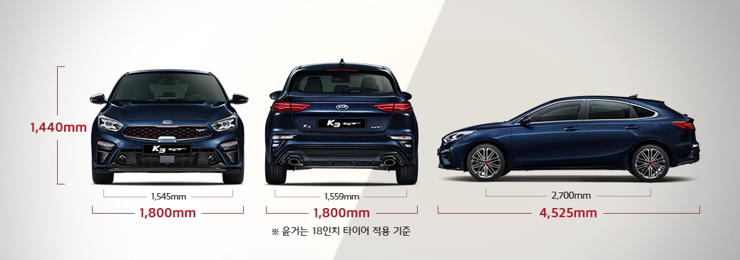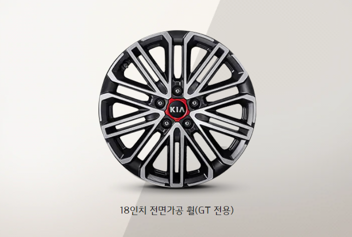 K3 GT 휠은 18인치 전면가공 휠로 GT전용 입니다. 위의 이미지를 참고 하시기 바랍니다.