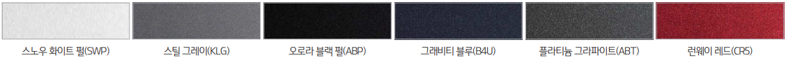 다음으로 알아 볼 정보는 색상 입니다. 차량을 선택하는 중요한 요인 중 하나가 바로 외부 색상 및 인테리어 입니다. 2021 K3 GT는 K3와 동일하게 색상 선택이 가능 합니다. 스노우 화이트, 스틸 그레이, 오로라 블랙 펄, 그래비티 블루, 플라티늄 그라파이트. 런웨이 레드 입니다.