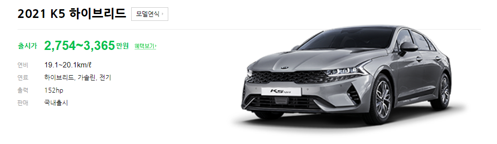 안녕하세요. 자동차전문 블로그 IWANTTOGETTHIS 입니다. 2021 K5 하이브리드는 기아자동차에서 잘 팔리는 인기 모델 중 하나 입니다. 이번 글에서는 2021 K5 하이브리드 가격 및 가격표 그리고 트림별 옵션, 옵션표 제원 색상 연비 내부 휠 등 자세히 알아보도록 하겠습니다. 상세 정보는 바로 하단을 봐주시기 바랍니다.