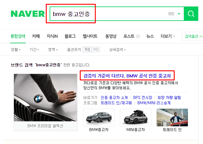 검색창에 bmw 중고인증, bmw 중고차 검색하시면 바로 하단에 광고 색션의 사이트를 방문 해주시면 됩니다.