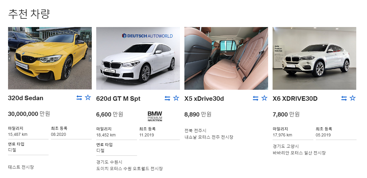 BMW에서는 BMW에서 공식으로 인증하고 점검하고 자체적으로 판매하는 중고차 홈페이지 따로 존재합니다. 여기서 구매를 한다면 확실히 믿고 구매가 가능 합니다.