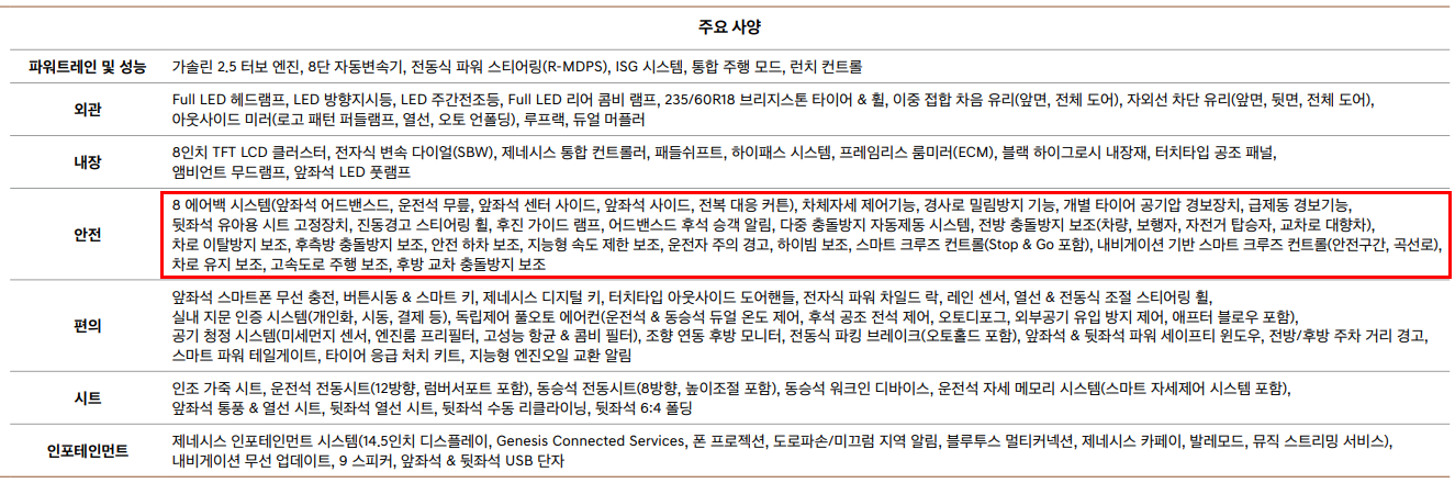 2021 GV70 트림별 가격 및 가격표 / 옵션 및 옵션표