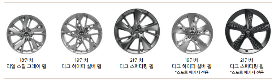 마지막으로 GV70 공인연비 및 휠 정보 입니다. 타이어 인치에 따라 약간의 차이가 있으니 연비를 신경 쓰시는 분들은 하단의 이미지를 잘 참고 해주시기 바랍니다.