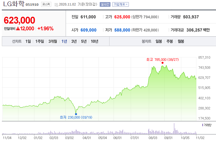 주가(11월02일 기준) : 623,000원